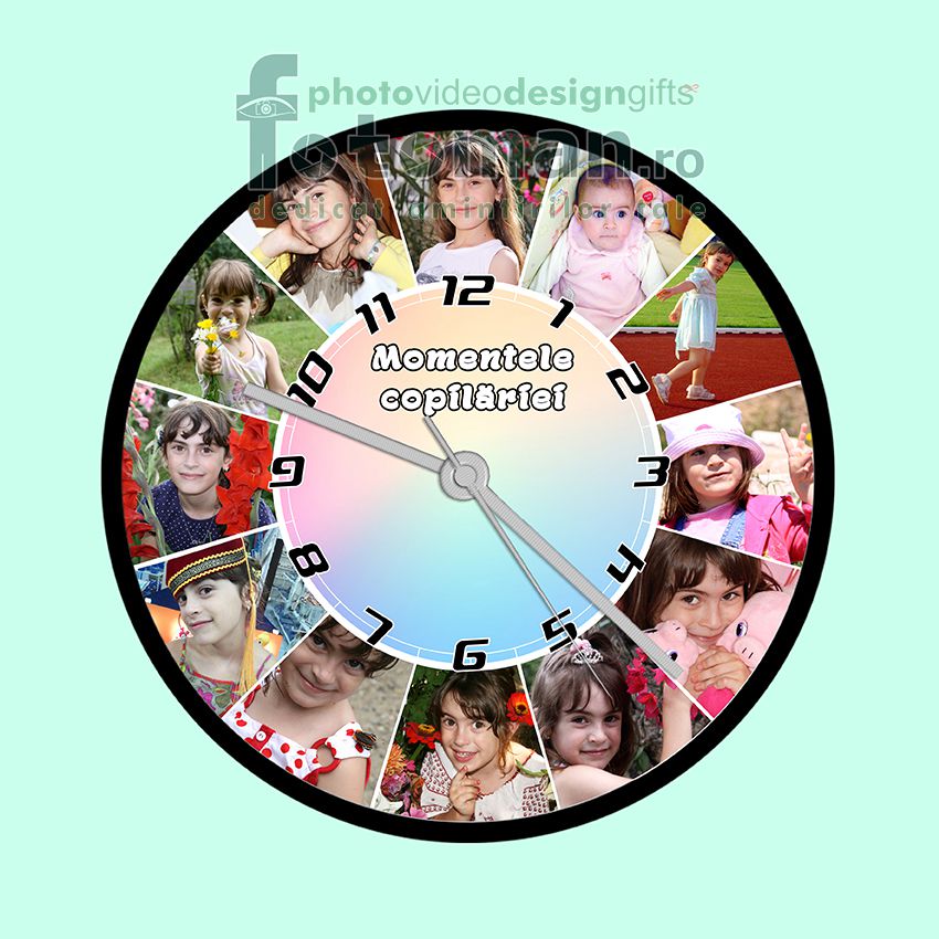 Ceas personalizat cu 12 imagini (sunt indicate busturi/portrete persoane)