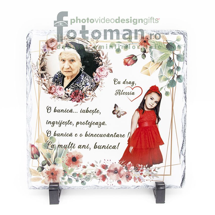 Piatra de ardezie se poate personaliza cu o fotografie, colaj, mesaj, simbol sau combinația acestora.