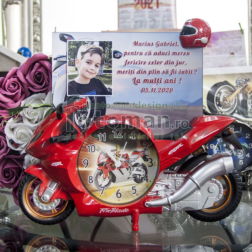Rama-ceas-motocicleta este prevazuta cu suport (pentru birou).