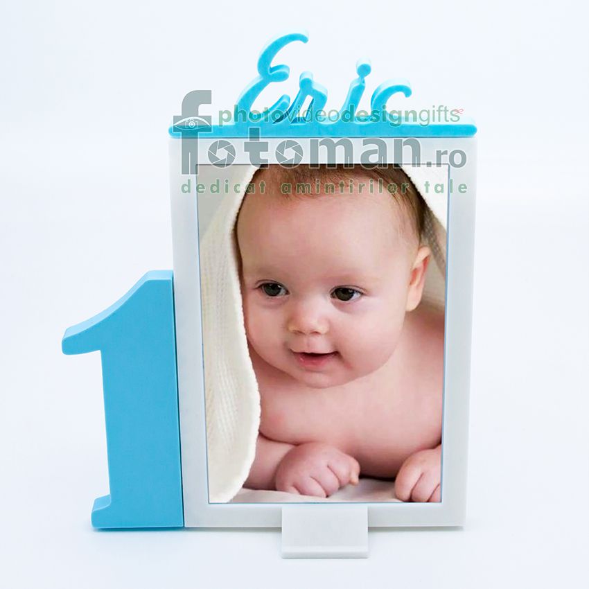 Rama bebelusi personalizata 1 an se confectioneaza la comanda, prin imprimare 3d plastic (cadrul pentru poza  10x15cm, cifra 1 si numele copilului se executa prin tehnologii de imprimare 3d).