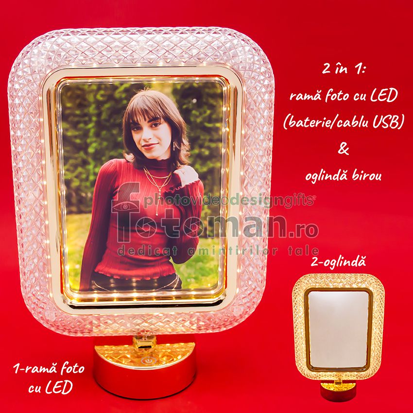 Rama foto personalizata cu poza (prin insertie) se lumineaza cu leduri (lumina calda, 3 nivele, 3 nuante)